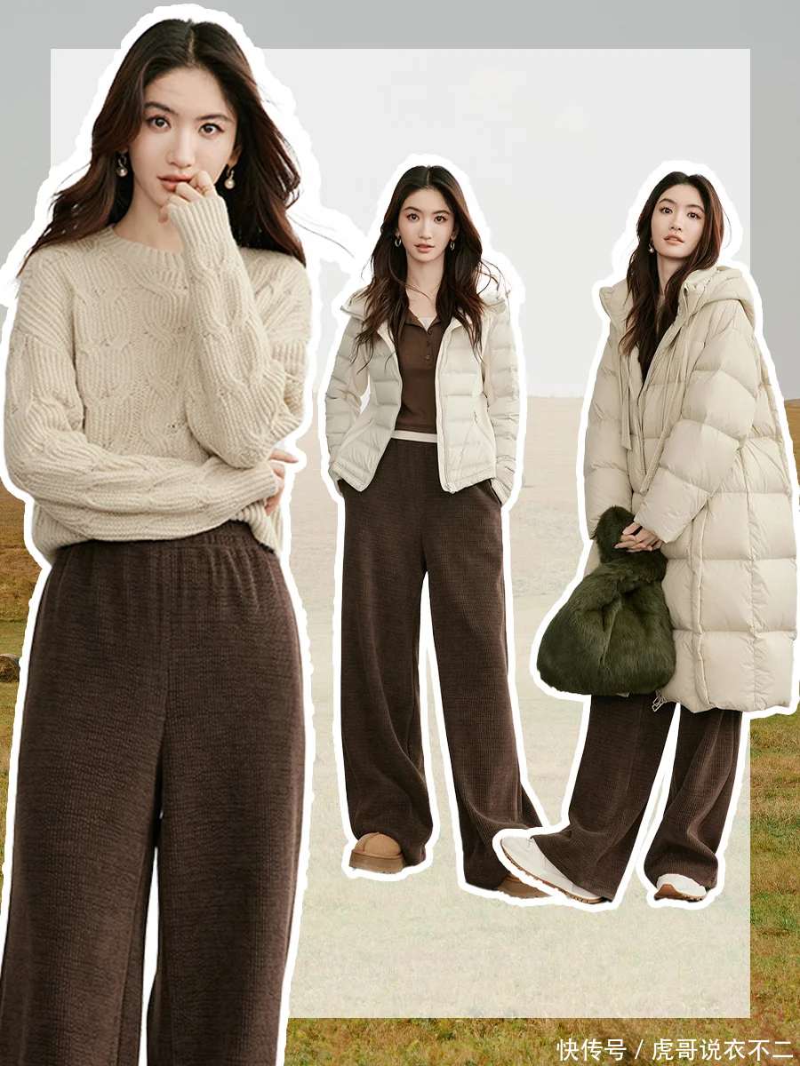 大地色系的长裤,同样拥有与黑色相似的百搭特性。无论是宽松的直筒裤,还是柔软的运动裤,都能完美适配各种身材,带来极致的舒适体验。大地色长裤的加入,不仅丰富了冬季穿搭的层次感,还能在视觉上拉长腿部线条,让你在冬日里也能轻松拥有修长双腿。