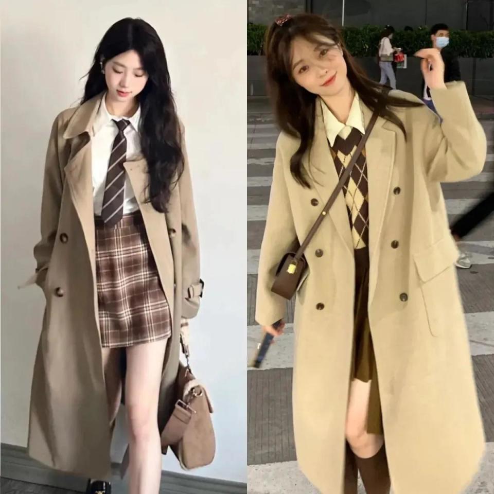 当然,除了以上三种的大衣款式外套,还有西装领的大衣外套,例如下面这两位素人博主的带外套就属于翻领大衣外套,特别是左边的这位内搭灰色的西服套装叠加一件黑色的高领毛衣,这样的穿衣造型轻松散发出你的气质,没有变成御姐范的气质女神。